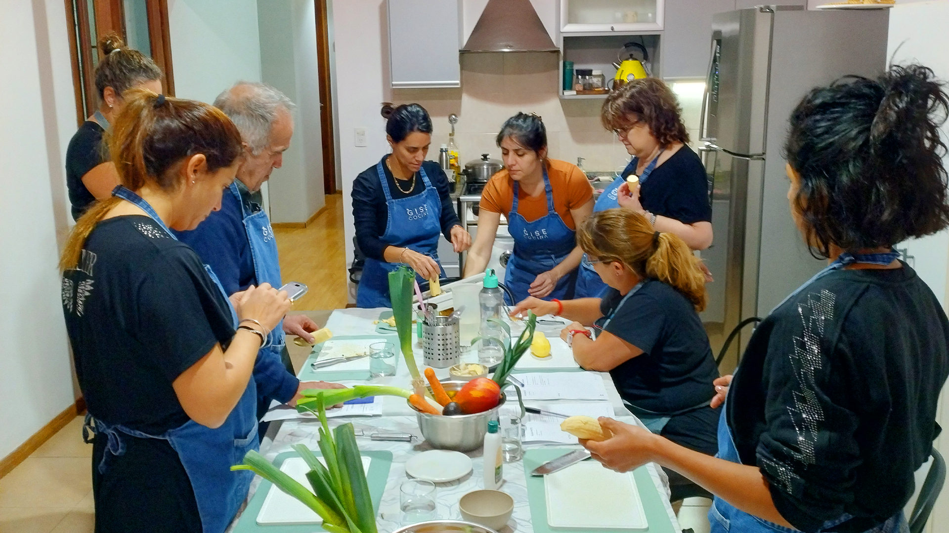 Las clases son 100% prácticas y para principiantes, vos elaboras todas las preparaciones desde cero y al finalizar la clase cenamos todo lo que cocinamos.