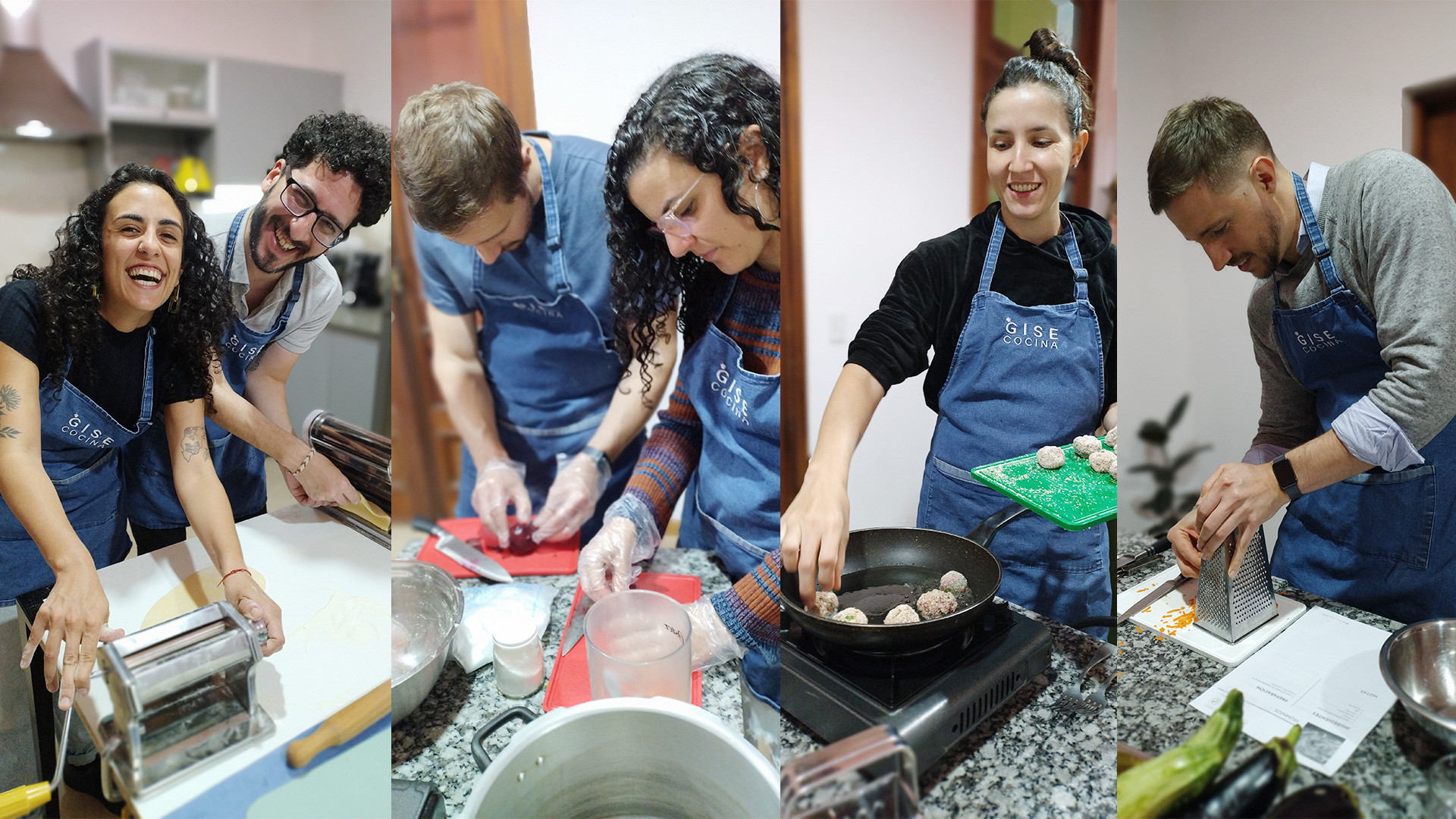 La mayoría de los cursos son grupales, con cupos reducidos para garantizar que todos puedan cocinar cómodos y recibir atención personalizada. También hay opciones privadas bajo reserva.